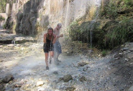 Efter gåturen fra bilen i bagende sol, er vandfaldet en kølig oplevelse