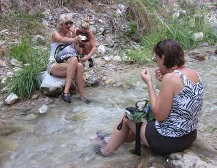 Efterhånden som turen går op gennem slugten, bliver flodbunden mere stenet. Selv om stenene ikke er glatte, gælder det om at have fodtøjet i orden. Sandaler og klip-klapper er forbudt! Vælg et par gamle tennissko eller vandrestøvler, som kan vaskes efter brug. Er du i tvivl, så træd mellem stenene, så er du sikker på ikke at skride. Man kan også bruge hænderne til at støtte sig med, hvis det kniber med sikkerheden.