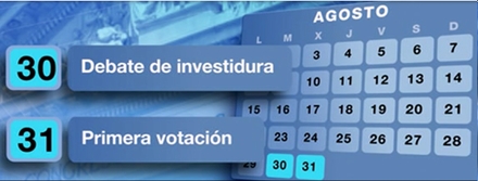 Den 31. august finder den første afstemning sted, som alene er et spørgsmål om, hvorvidt man vil acceptere Mariano Rajoy som ny regeringsleder.