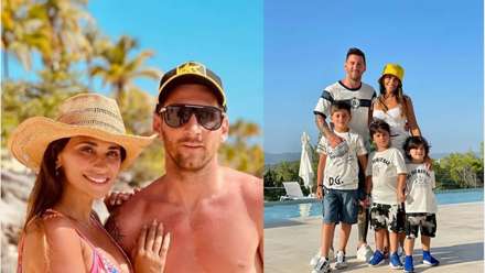 Messis hustru, barndomskæresten Antonela Roccuzzo og deres tre sønner på otte, fem og tre år