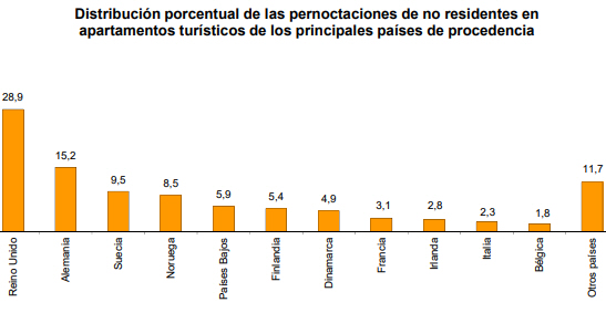England var bedst repræsenteret med 999.655 overnatninger, hvilket dog var 4,8 procent færre end i februar 2017. Det næststørste marked var Tyskland med 525.825 overnatninger, hvilket var et fald på 3,9 procent.