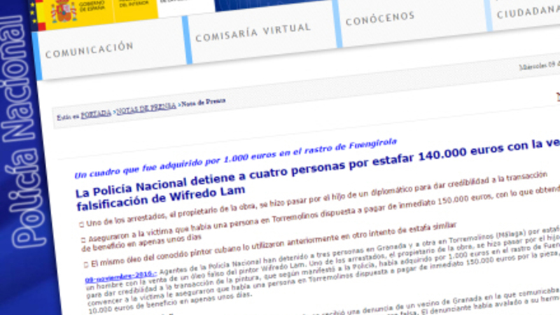Tre personer er blevet anholdt i Granada og én i Torremolinos for at have solgt et falsk kunstværk.