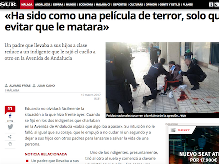 Den 53-årige spanier blev hjulpet på hospital Carlos Haya af paramedicinerne, der var blevet tilkaldt. Manden røg direkte på operationsbordet for skaderne i halsen.