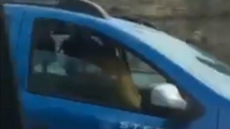 Mens de kørte på motorvejen i Castilla y León, filmede en forbipasserende, at de havde lidt for intim nærkontakt til at kunne køre på forsvarlig vis.