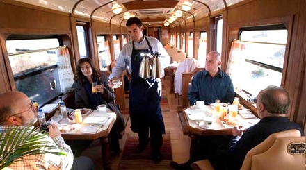 Toget havde ingen kabys, så bortset fra den udmærkede morgenmad, blev al mad indtaget på restauranter.