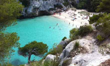 Hvis du fristes til at tage turen ned til stranden, så prøv den lille bugt Cala de Aigua-Xelida, som består af et par klipper i de mærkeligste former, hvor havets krystalklare vand trænger sig ind mellem klipper og fyrretræer.