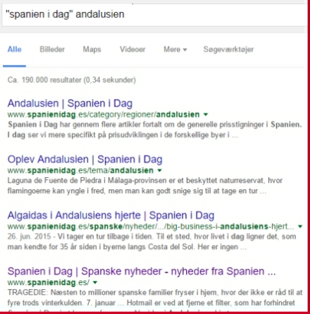 Start med at skrive: '"spanien i dag'" og derefter de søgeord, som du kan huske