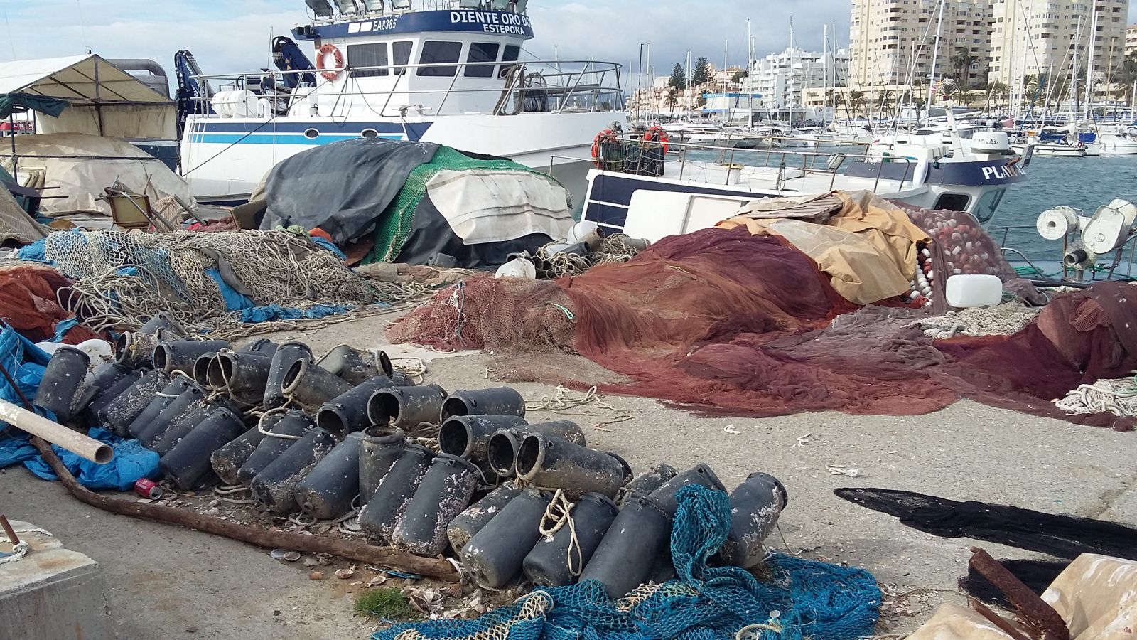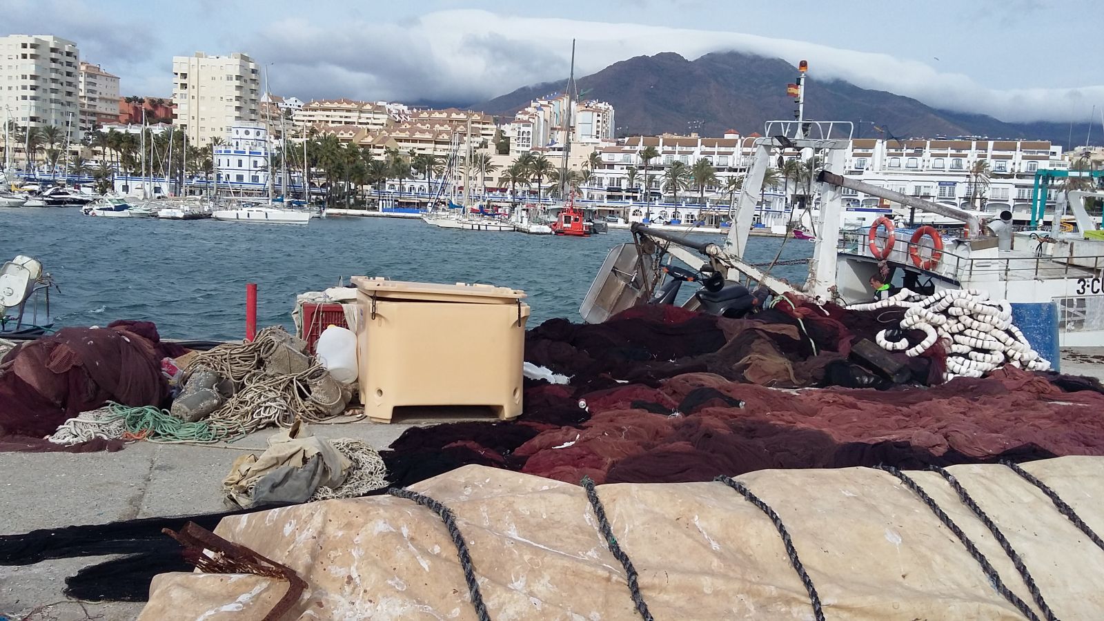 Fiskerihavnen i Estepona er fyldt med net