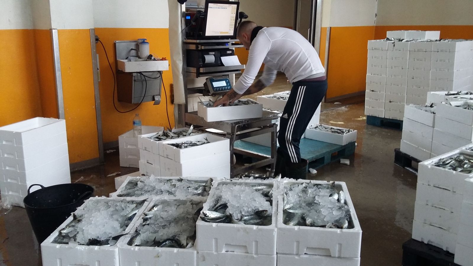 Sardiner på køl i iskasser, klar til athentning