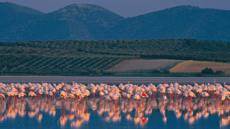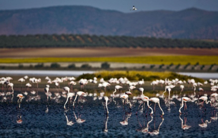 Saltsøen er en af de største på Den Iberiske Halvø, og dette vådområdes største værdi er den enorme mængde lyserøde flamingoer, der kommer dertil hvert år for at yngle og passe deres kyllinger.