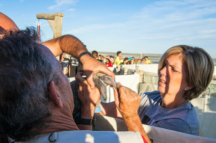 Her vejes og ringmærkes kyllingerne, og de får et generelt helbredstjek. På den måde kan man fremover føre register og gennemføre videnskabelige og biologiske undersøgelser af deres færd. Efter registreringen bliver kyllingerne nænsomt puttet tilbage i vuggestuen.