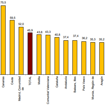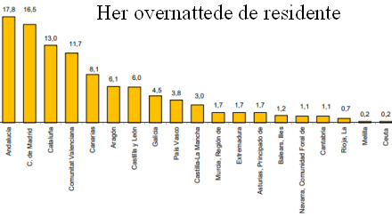 Nummer tre er Andalusien med en andel på 11,3 procent og en stigning på 4,2 procent.
