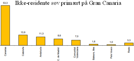De vigtigste destinationer for ikke-residente rejsende, er De Kanariske Øer, med 53,3 procent af de samlede overnatninger. Men faktisk er der sket et fald i antallet af overnatninger blandt udlændinge på 2,2 procent i forhold til januar 2017.