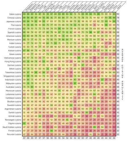 YouGov spurgte folk, hvilke af 34 nationale køkkener de havde prøvet, og om de kunne lide maden eller ej. Ikke overraskende var italiensk mad det mest populære. Det italienske køkken havde en gennemsnitlig popularitetsscore på 84 procent i de 24 adspurgte lande.