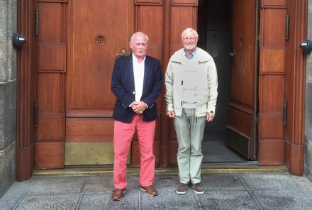 Benny Olsen og Carl Erik Knutsson foran indgangen til skatteministeriet