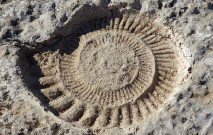 Ved udsigtspunktet på Los Balconcillos ser man forstenede rester af de forhistoriske sø-snegle Amonites.