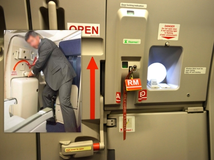 Normalt vil det være umuligt på grund af den store trykforskel mellem kabinen og udvendigt. Flydøren åbner indad og trykket indefra holder døren på plads.