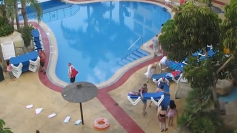 Og her er samme video, men brangt på en spansk tv-kanal, hvor nogle af de lokale fortæller - halvgrinende - at de aldrig har set noget lignende. Én siger også, at der jo altså er ganske meget andet at lave på øen end bare at ligge der ved poolen.