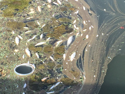 Fiskene, størstedelen er multe, har måtte lade livet, da der har været et saltvandsudslip i floden.