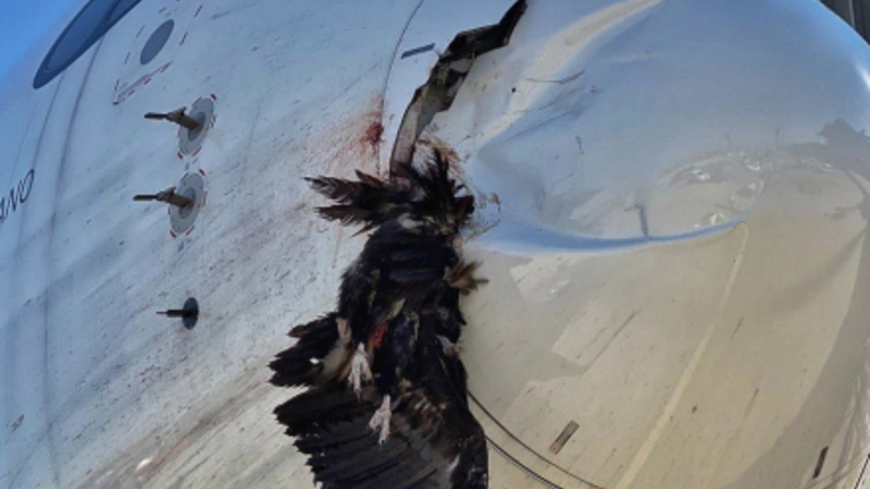 Der var tale om et Airbus A350-fly fra Iberia, der landede i hovedstadens Barajas Lufthavn ved middagstid onsdag morgen med en død grib indlejret i næsen af flyet, hvor radaren er placeret. Flyet, der kom fra Bogotá, kunne heldigvis lande uden problemet.