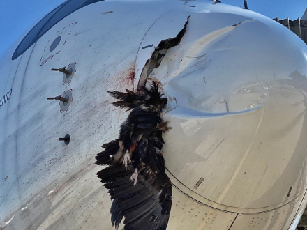 Denne type kollisioner, der er kendt som "airstrikes", kan være meget farlige, da munkegribben - Aegypius monachus - er en ordentlig fætter.