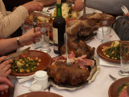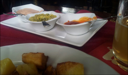 Men der er også 'Codillo asado' - steget svinekød - ansjoser, kylling på spyd, svinefødder og sågar 'Morro de cerdo' - svinesnude.