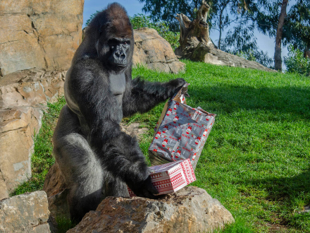 Løver, elefanter, surikater, gorillaer og chimpanser har tyvstartet på julen, og fik i går en ordentlig bunke overraskelser og gaver fra julemanden.