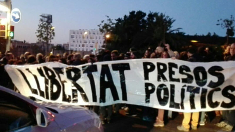 Tusindvis af demonstranter er lige nu på gaden i Barcelona og kræver frihed til "de politiske fanger" - de fængslede tidligere catalanske politiske ledere.