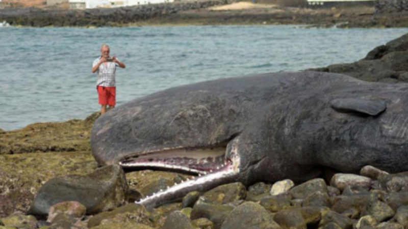 VIDEO: Folk på kanarieø fik sig noget af et syn i går, da en af havets giganter pludselig lå på kysten.