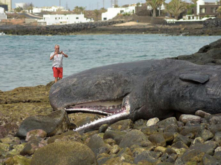Tonstung krop af en kaskelothval, der målte mindst 15 meter, dukkede i går op på Lanzarotes kyst.