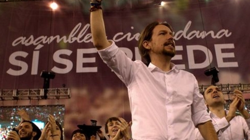 POLITIK: Tilhængere af den karismatiske Podemos-leder, Pablo Iglesias, høstede en klar sejr under weekendens landsmøde i Madrid.