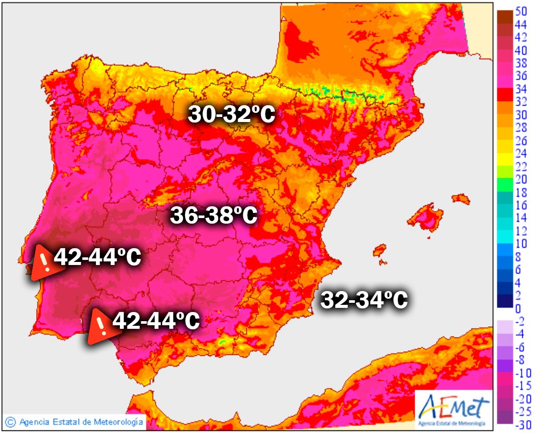 I løbet af de næste par dage vil vi sandsynligvis opleve sommerens anden hedebølge i Spanien, hvor mange områder vil få temperaturer langt over 40 grader i flere dage.