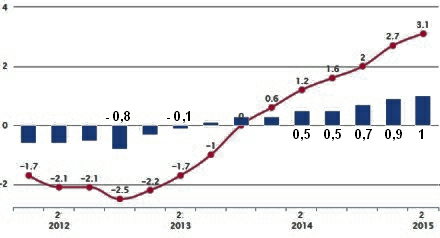 Efter flere års stagnation er de offentlige udgifter også steget med 0,4 procent, hvilket formentlig hænger sammen med afholdelse af de lokale og regionale valg i maj.