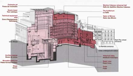 Bygningen på Las Ramblas blev opført i 1847. Projektet blev finansieret af private aktionærer, som i mere end én forstand satte sig på en stor del af loger og lænestole i det fremtidige teater.