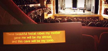 Der findes lydbeskrivelse til opførelserne, enten i salen eller på app, og der er også undertekster til operaerne. De vises enten på skærme over scenerummet eller på små skærme ved hver enkelt siddeplads på henholdsvis engelsk, catalansk og højspansk.