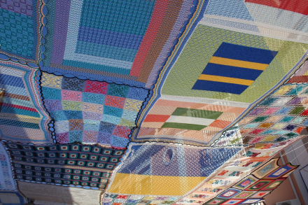 Det gigantiske tæppe består af de stykker, der blev hæklet i løbet af det første og andet år, og de nye stykker, der er blevet vævet og tilføjet i løbet af denne tredje workshop, gør, at det nu giver mere skygge i bredden end i de foregående år.