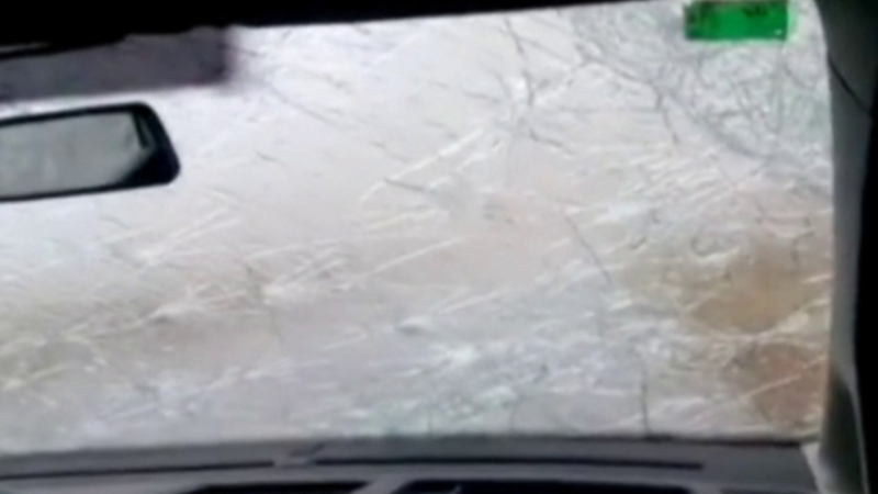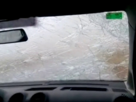 VIDEO: To personer blev fanget i voldsomt haglvejr, og med lynets hast krakelerede hele forruden. Den ene filmede det hele.
