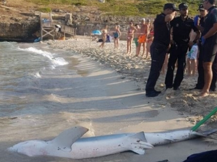 VIDEO: Badende turister fik sig en forskrækkelse, da en haj pludselig dukkede op ved stranden på ferieø.