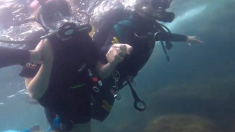 Med deres helt egen dykkerbetjent i hånden opholdt de sig i 20 minutter tre meter under havets overflade.