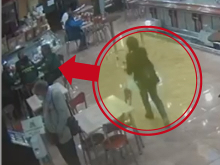Dramaet opstod i baren i et serviceområde nær Albacetes provinshovedstad, hvor betjentene sad og drak en kop kaffe. Da kvinden henvendte sig med en sandwich i hånden, var hun helt ude af stand til at tale og viste tydelige tegn på, at han druknede.