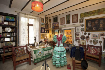 Det er blot en af de mange dekorationer på væggene, der er prydet med malerier, gaver, præmier, fotografier og sågar et banner fra Albas favorit fodboldklub El Betís.