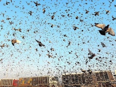 55.000 portugisiske brevduer baskede om kap, da de skulle tilbagelægge flere hundrede kilometer fra den spanske østkyst til deres hjem i Portugal.