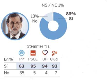 Der er især støtterne til Unidos Podemos og PSOE, der siger ja med henholdsvis 76 og 70 procent.