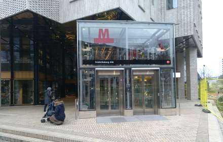Gå ind i elevatoren på Frederiksberg Allé. I ét kort hug er du nede på perronen og i løbet af 1 til 1½ minut er din metro der, hvis ikke før