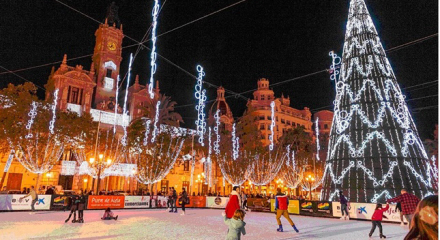 På Rådhuspladsen, Plaza del Ayuntamiento finder du et gigantisk juletræ og en isskøjtebane.