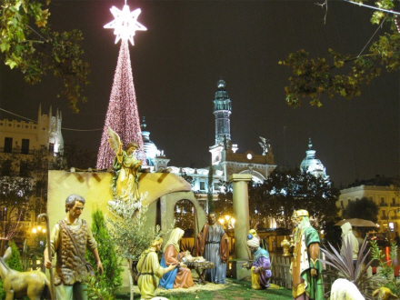 På rådhuspladsen finder du også årets julekrybbe, El Belén, som traditionen tro viser det klassiske scenarie fra Jesu fødsel. Og det er altså ikke som vi kender det fra Danmark med lidt var og nogle forkølede figurer, der mangler en arm og en smølf spiller Jesus. Belén er virkeligt noget, som spanierne går op i og er stolte af.