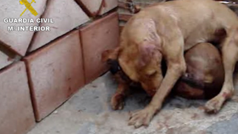 Hundene var dækket af ar og sår, da politiet fandt dem (foto: Guardia Civil)