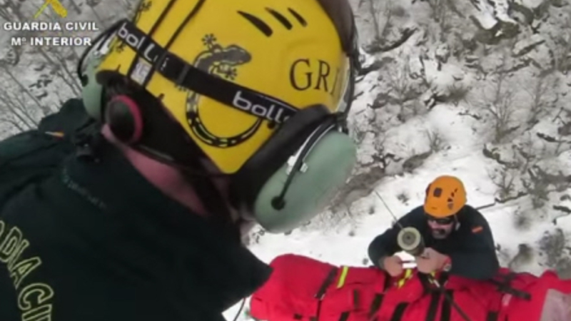 Som man kan se på videoen herunder fandt Guardia Civil-betjente en vandrer i Sierra de Urbasa i Navarra, der var snublet og havde slået ryggen.