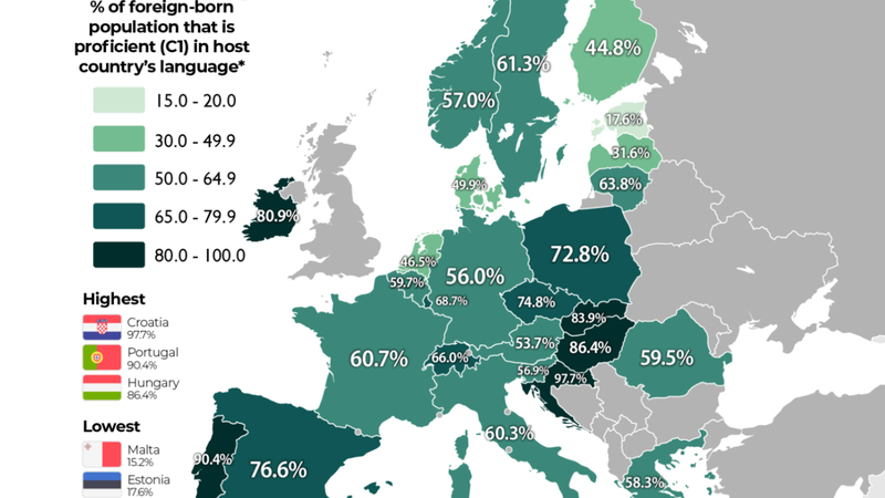 Sprogkundskaber hos udenlandskfødte i Europa.