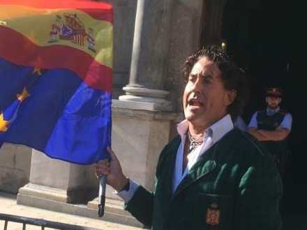 Han havde stillet sig med anti-selvstændighedsplakater på Plaza de Sant Jaume om morgenen. Da alle de demonstrerende, separatistiske studenter dukkede op, blev der optræk til ballade. Han gav sig dog ikke op, før han blev lagt i håndjern af Los Mossos.